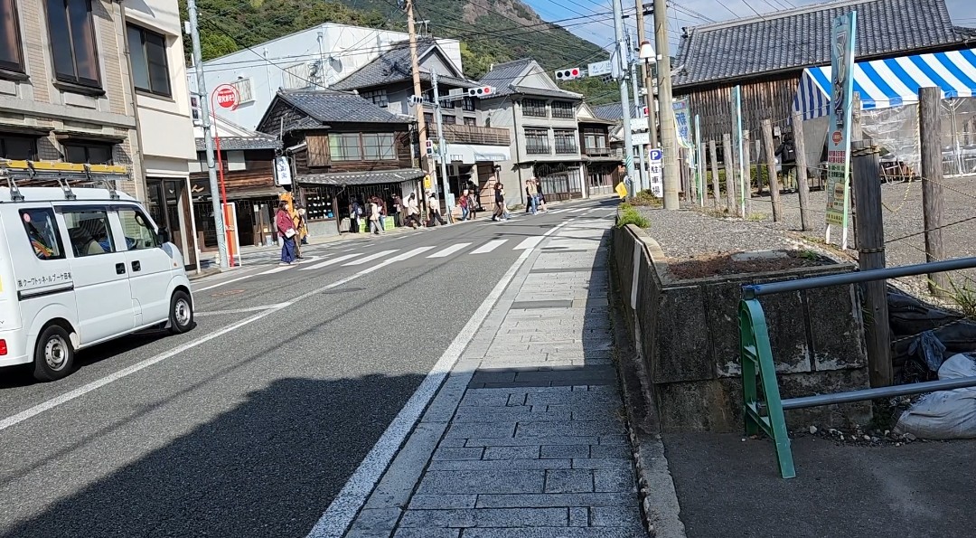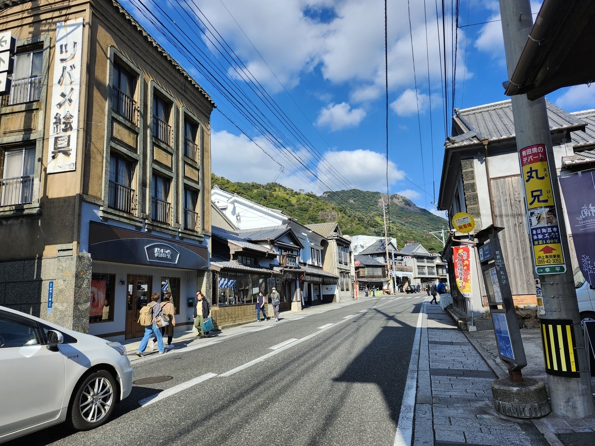 有田小学校駐車場からお店通りまで徒歩で約5分くらい。